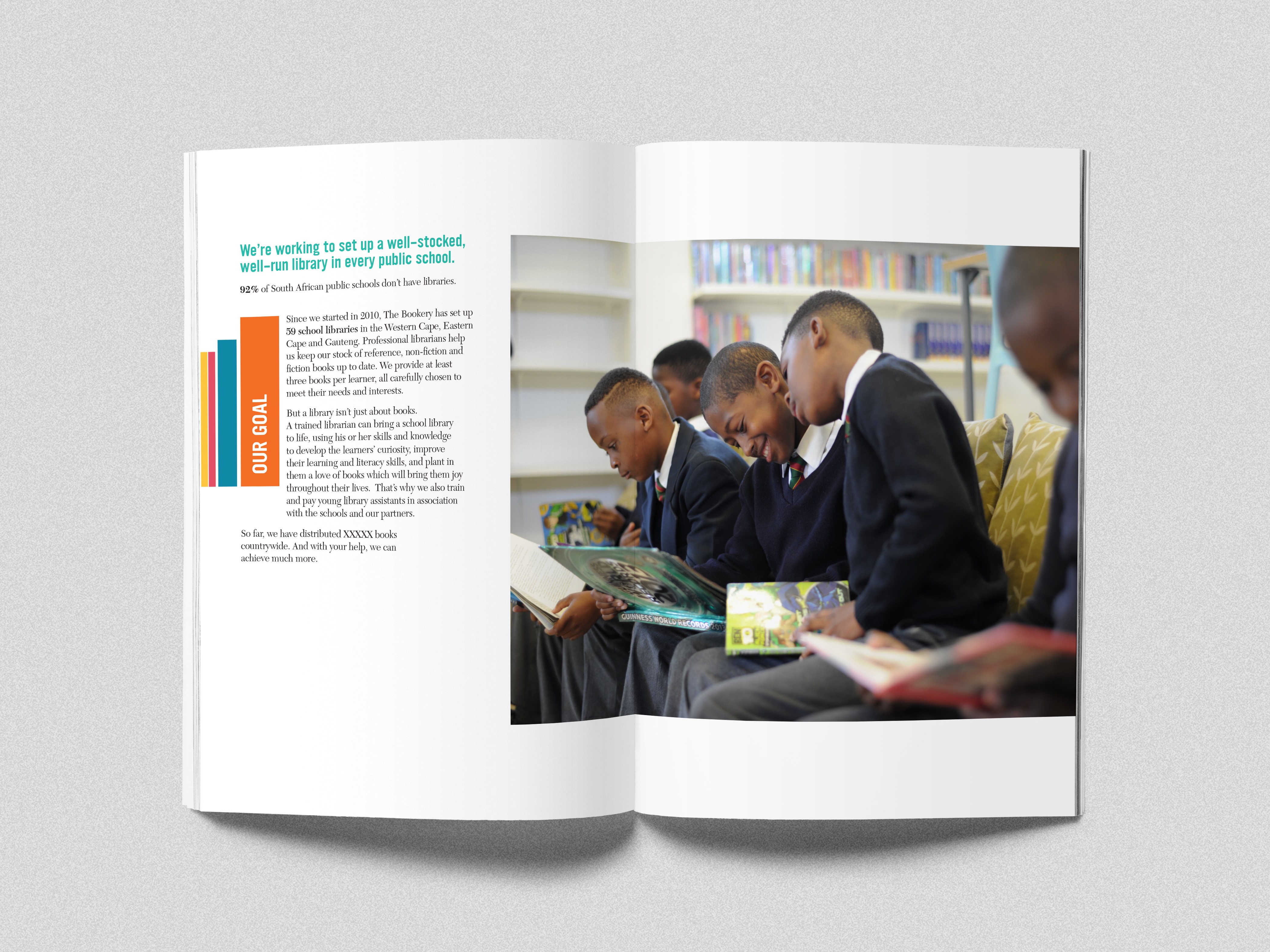The Bookery needed an informative print piece for there upcoming event. The booklet informs you about The Bookery, what they do and there goals.